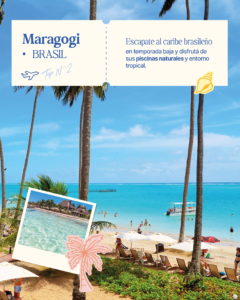 En el corazón del nordeste brasileño, Maragogi aparece como una postal viva del Caribe, pero sin salir de Brasil. Viajar en temporada baja es descubrir este paraíso con mayor tranquilidad: aguas cristalinas, piscinas naturales que parecen espejos y una atmósfera cálida que invita a bajar revoluciones. Sus paisajes tropicales proponen un ritmo más pausado, ideal para quienes buscan renovar energía, conectarse con la naturaleza y disfrutar del sol sin multitudes. Cada visita a sus “galés” es una oportunidad de asombrarse de nuevo.