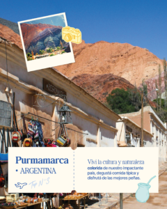 Purmamarca es un viaje al corazón cultural y natural del norte argentino. A los pies del imponente Cerro de los Siete Colores, el pueblo invita a vivir una experiencia auténtica entre tradiciones, sabores y música. Caminar por sus calles de tierra es encontrarse con artesanías locales, aromas de comida típica recién hecha y la calidez de su gente. Al caer la noche, las peñas se llenan de ritmo y folklore, convirtiendo cada jornada en un encuentro único con la esencia del país. Un destino perfecto para quienes buscan naturaleza, historia y vivencias que perduran.